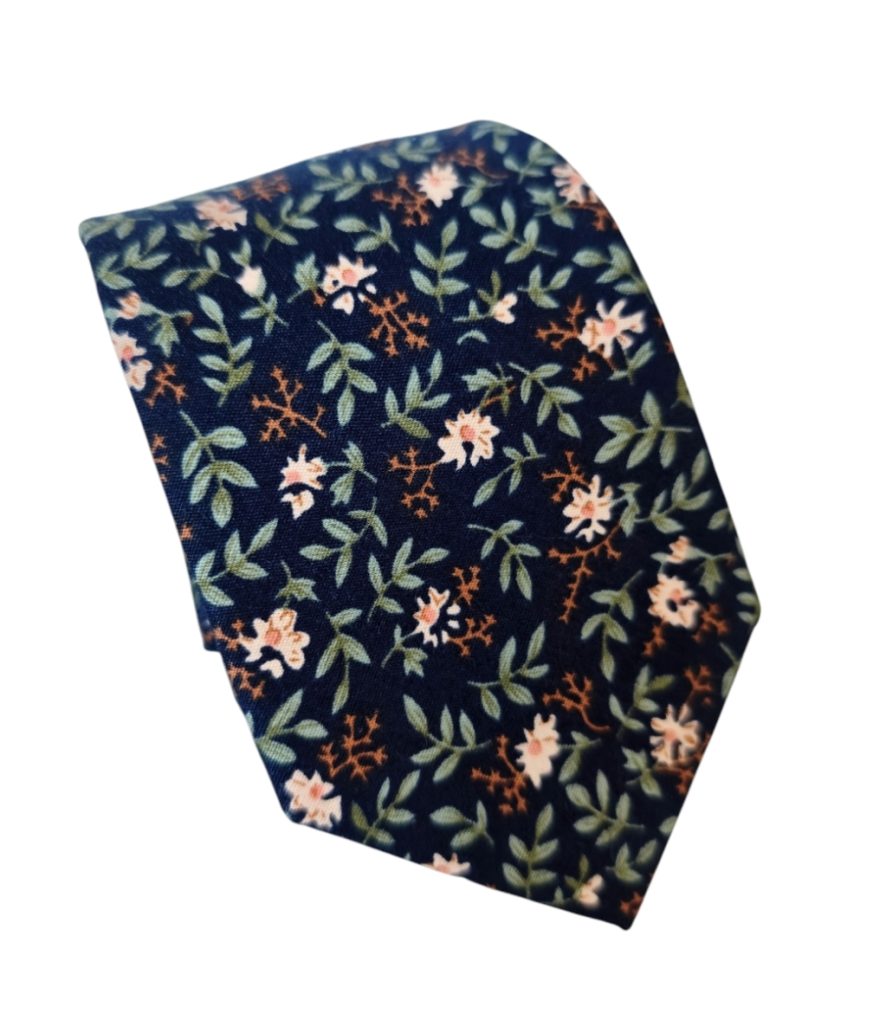 Dale un toque único y sofisticado a tu look con esta corbata juvenil de algodón en tono oscuro con delicado diseño de flores beige. Perfecta para hombres que buscan un estilo moderno, fresco y versátil, esta corbata combina elegancia con un aire casual ideal para distintas ocasiones.