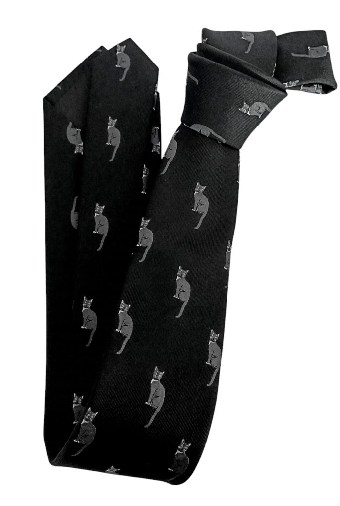 Corbata original juvenil de seda negra tejida gatos grises – Diseño chileno