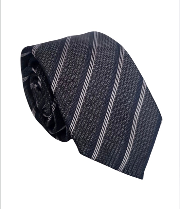 Corbata seda gris oscuro tejida líneas oblicuas azul marino