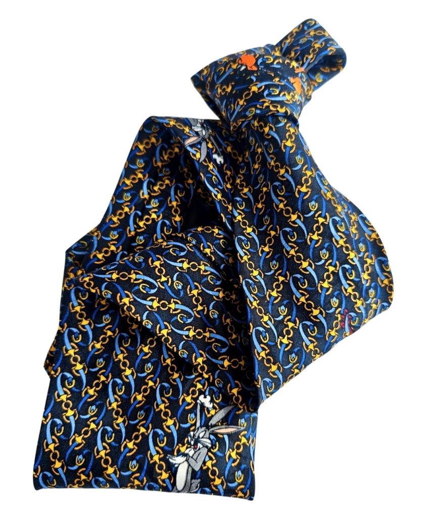 Corbata Vintage Reciclada 100% seda, corbatas rescatadas en desuso – Pala ancha 8cm estampado looney tunes
